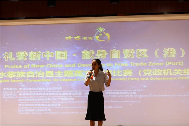 陵水“禮贊新中國·獻(xiàn)身自貿(mào)區(qū)(港)”主題英文演講比賽現(xiàn)場