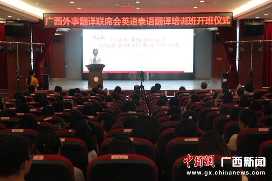 中新網(wǎng)廣西新聞7月12日電(記者 楊志雄)7月11日,2018廣西外事翻譯聯(lián)席會(huì)英語(yǔ)、泰語(yǔ)翻譯培訓(xùn)班開(kāi)班儀式在廣西外國(guó)語(yǔ)學(xué)院舉行。此次培訓(xùn)時(shí)間為期3天,培訓(xùn)科目包括英語(yǔ)筆譯和泰語(yǔ)口筆譯培訓(xùn)班兩個(gè)項(xiàng)目。